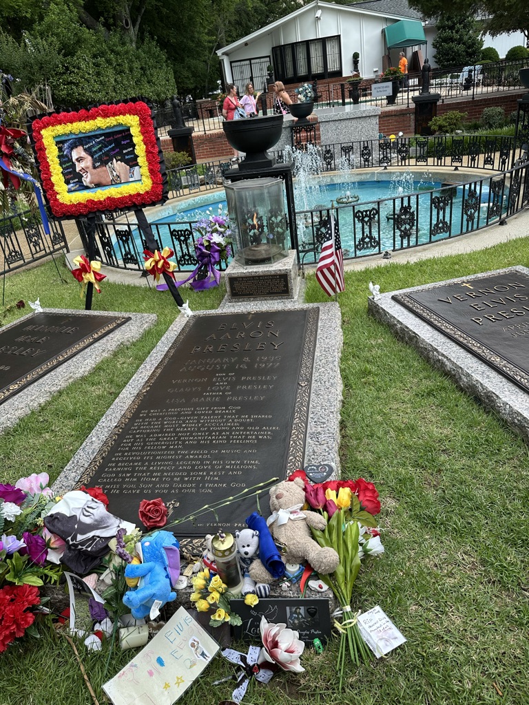 As you walk back toward the gates, past coloured foliage and lawns and garden beds filled with plants, it’s impossible not to feel a kind of peace here at Graceland. As I stood beside the swimming pool in the line to visit the family grave sites, I will admit that I was moved to tears and didn’t think I would be.
