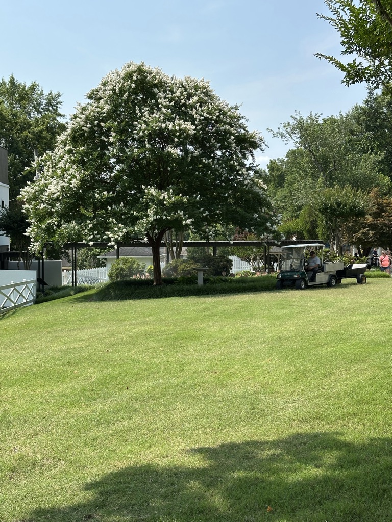 The magnificent magnolias are the first to greet you. They’re HUGE! Towering, regal, and impossibly Southern, their glossy green leaves and creamy white blooms seem to hold the stories of decades past. I have never seem magnolias that big before so I did bang on about them a bit. Their sweet scent is soft but unmistakable — a perfume of the old South, elegant and enduring. At this point my friends were probably wondering if I was going to be gardensplaining for the duration of the tour…poor Laura and Brian!