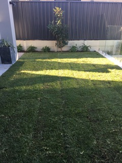 Subdividing a large block of land where this client had lived for 15 years previous to the bulldozer moving in, gave way to two new very modern, two storey homes. I planted out spaces in between grey paving with Lagerstroemia Natchez-the white flowering Crepe Myrtle in the front of each of the new homes to offer shade for cars on the driveway. Each of the homes has a Pametto lawn space out the back. The lawn acts as a cool foil for the alfresco spaces.