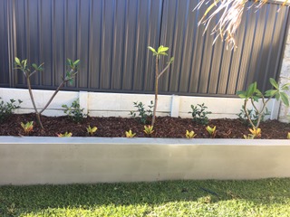 The design brief for this family garden was “low maintenance” all the way. The client has lived at this City Beach address for many years but undertook a massive renovation that was practically a new build and with that a new garden with modern architectural elements like the huge Dracena Draco-Dragon tree that is now a lovely feature in the front garden. One year in and the garden is thriving and provides a lush oasis for this family of four with large Magnolia Kay Parris lining the sides of the home underplanted with Lomandra Tilga and Philodnedron Xanadu providing screening from neighbours and lush green “walls” to enter the alfresco area and the swimming pool zone which is framed with Golden Cane palms and Nandina as well a tropical Cannas in planter boxes. Frangipanis and a large Triangle Palm were repurposed from the old garden and re-used in the new one.